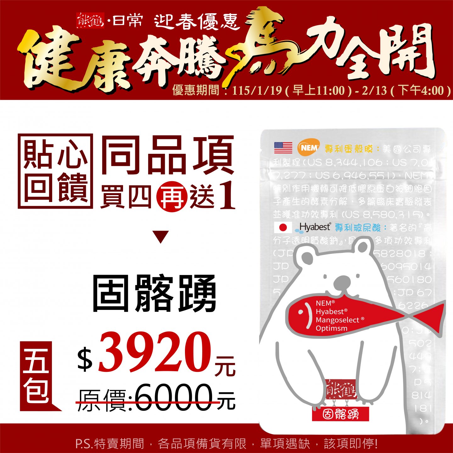 貼心回饋【固髂踴 GUM & GO】買四送一/5入組</font><br>NT$3920</font><br> <del>NT$6000